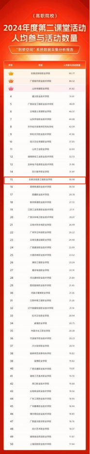 喜报!我院获评2024年度全国高职院校第二课堂活动评价50强