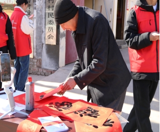 在春联下乡的活动现场,志愿者们挥毫泼墨,笔锋游走间,一幅幅寓意吉祥的春联跃然纸上。村民们围在一旁,时不时称赞,村民脸上洋溢着幸福的笑容。活动中,志愿者与村民还交流了传统过年的习俗,现场氛围热烈温馨。