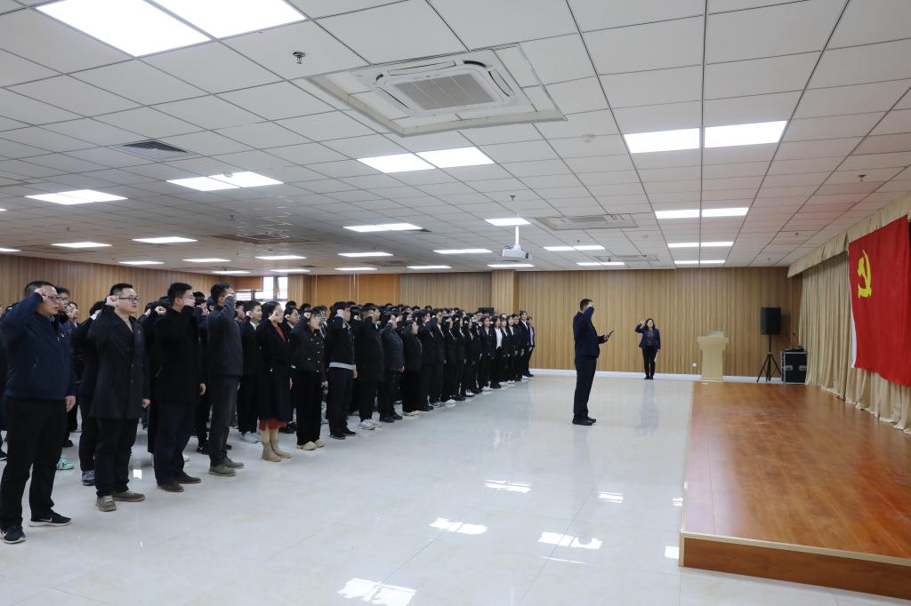 “我志愿加入中国共产党,拥护党的纲领,遵守党的章程……为共产主义奋斗终身,随时准备为党和人民牺牲一切,永不叛党!”1月5日下午,学院举行2023年下半年预备党员入党宣誓仪式。来自各系部的101名师生预备党员在启智报告厅面向鲜红的党旗许下铮铮誓言,接受思想洗礼。学院党委委员、组宣部部长范成宝出席并讲话。